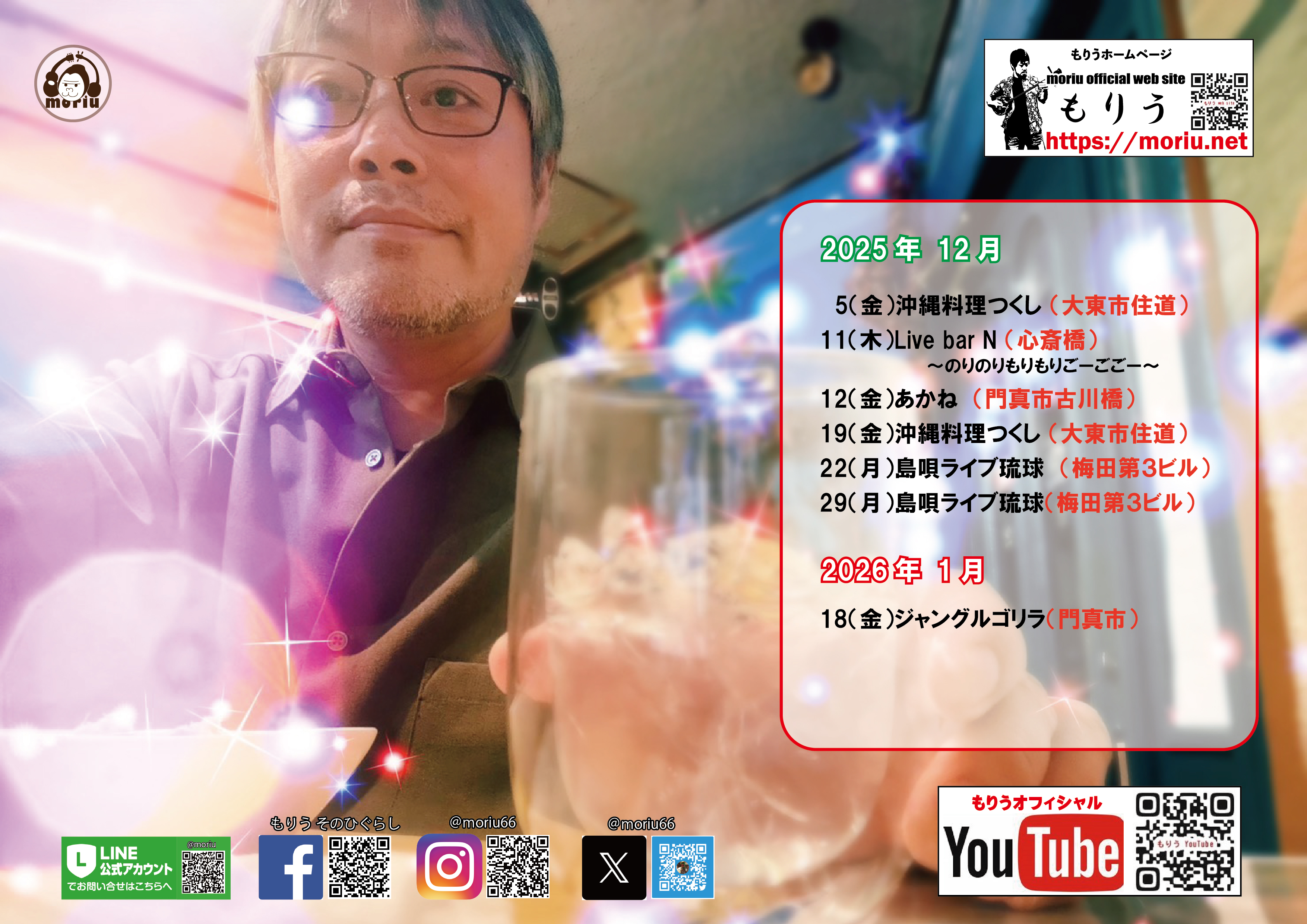◆2025.12月 島唄ライブ 琉球(大阪 梅田)出演日決定!